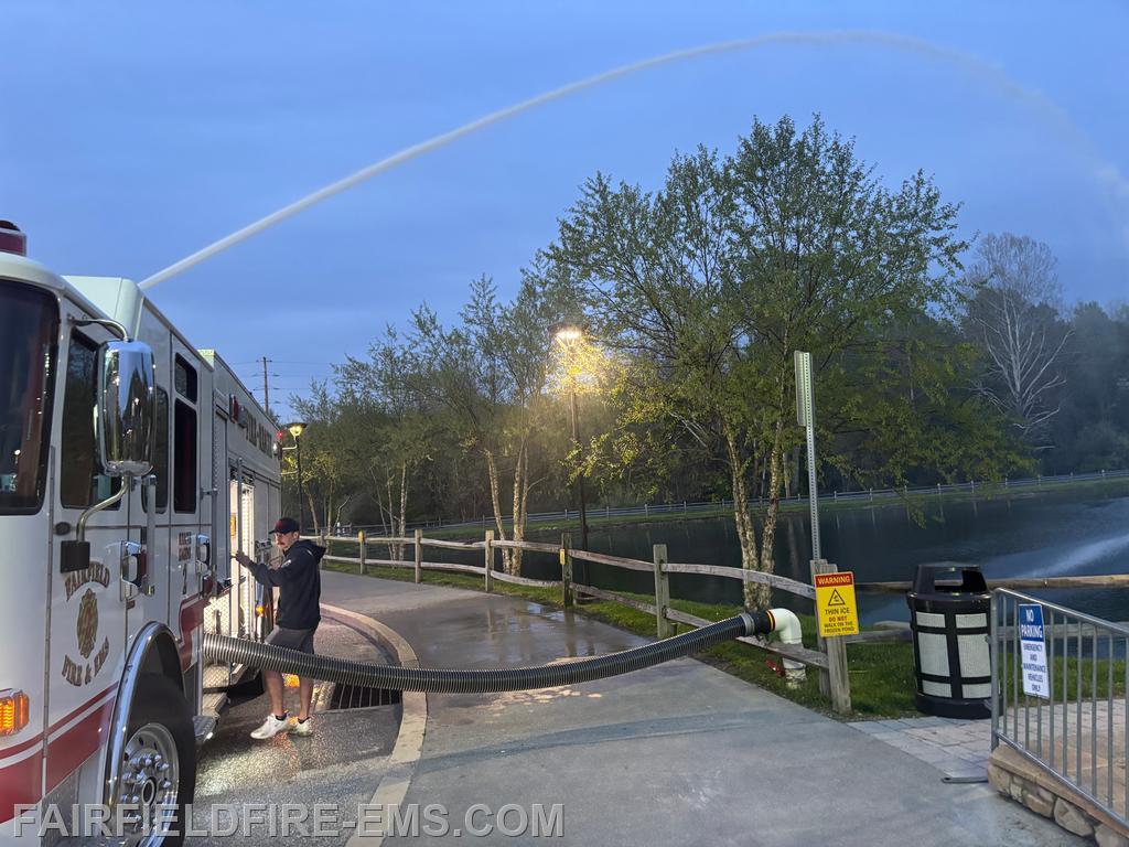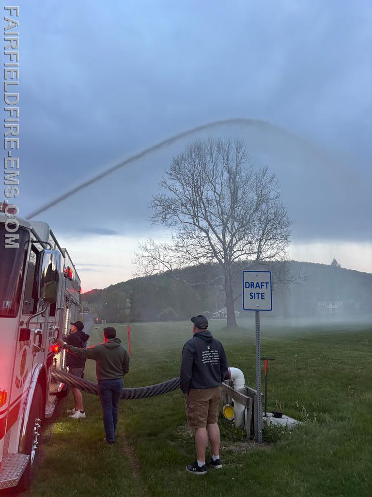Every Tuesday night the Fairfield Community Fire Company has training for its members. For the past several weeks we’ve been drafting at several locations around Carroll Valley. If you’re not familiar with drafting, it’s a technique that enables firefighters to draw water from lakes, creeks, and streams for use during fire emergencies. The photos show the location and the gallons per minute (GPM) at each site.