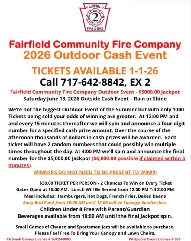 | Mark your calendars now and plan to attend these events at the Fairfield Community Fire Department.