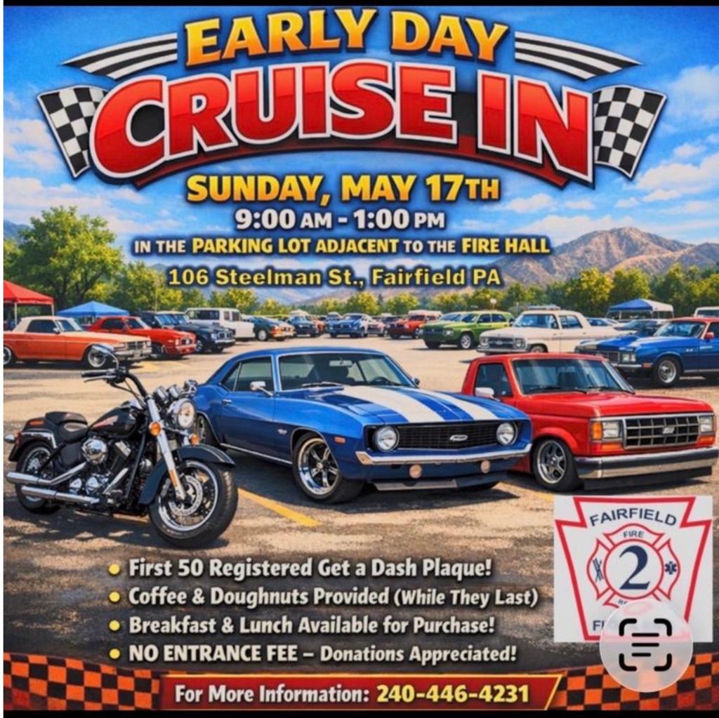 On Saturday May 17th we will be having our Annual Early Day Car Cruise In. See attached flyer for more information.